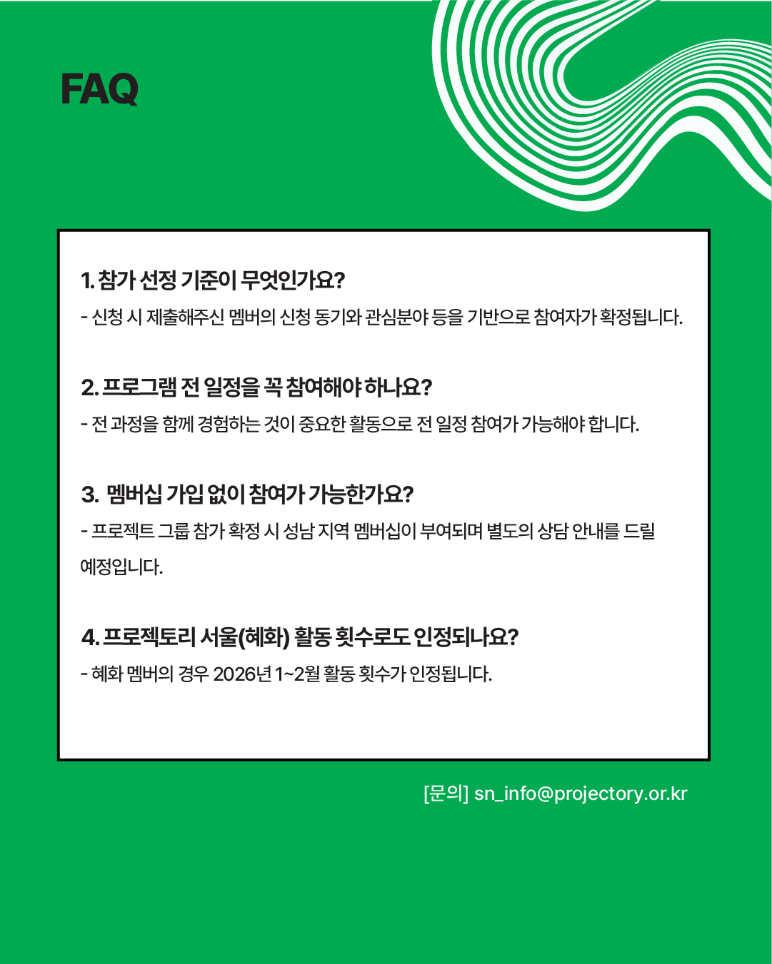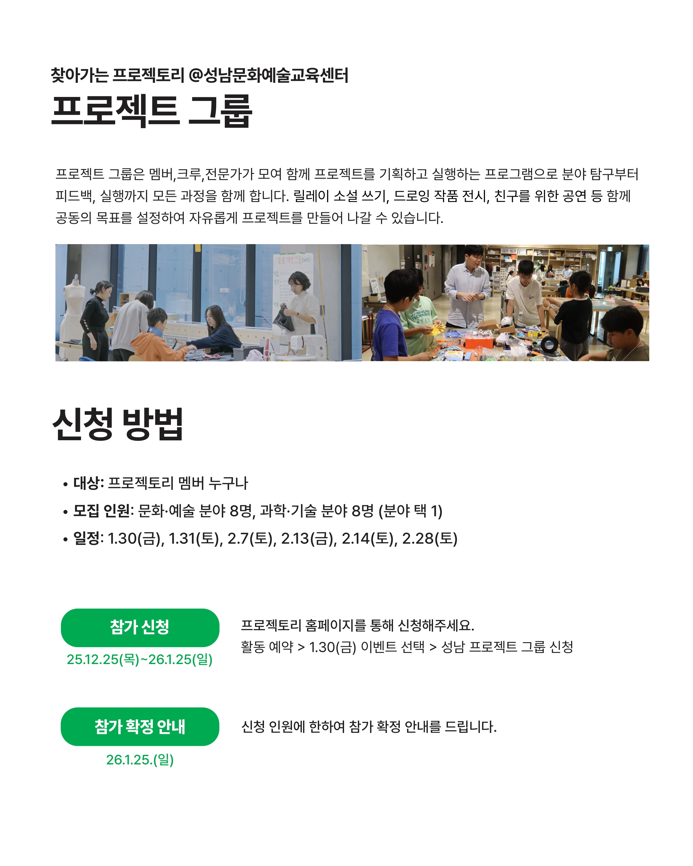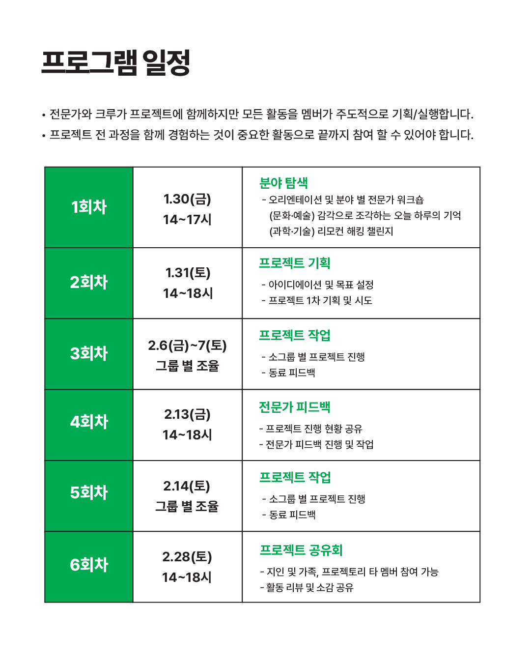프로젝토리 성남에서도 1.30(금) ~ 2.28(토) 기간 동안 프로젝트 그룹이 운영됩니다.