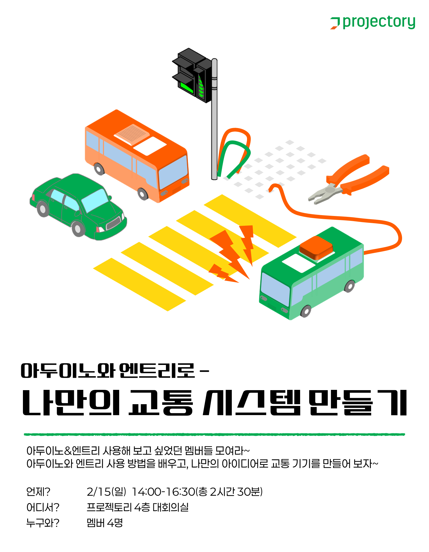 신호등, 차량등, 건널목 등 교통 기기를 직접 만들어보는 프로젝트형 워크숍입니다.